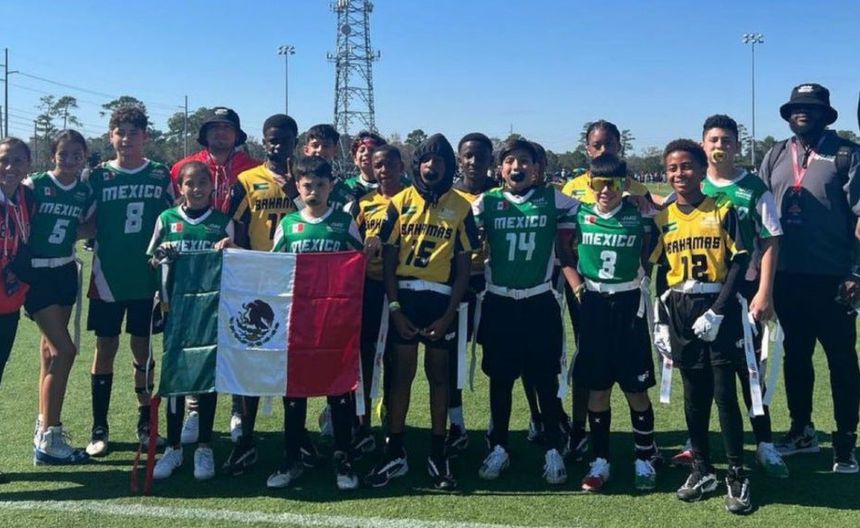 México, equipo que está compuesto por los jóvenes menores de 12 años y bajo el mando de Pamela Reyes, triunfaron en sus tres compromisos este viernes y así avanzaron a los playoffs programados para realizarse en Orlando, sede del Pro Bowl 2024 de la NFL.