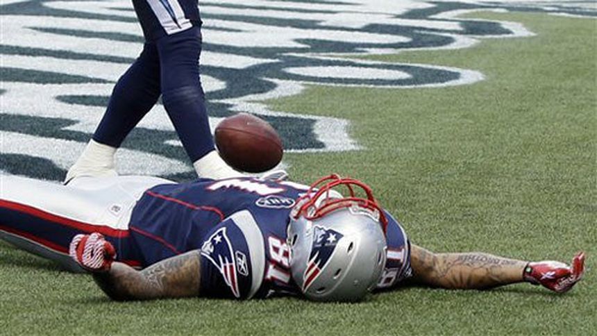 El ala cerrada de los Patriotas de Nueva Inglaterra, Aarón Hernández, abandonó el partido ante Cargadores de San Diego, por una lesión en la rodilla, lo que podría dejarlo fuera durante dos semanas.