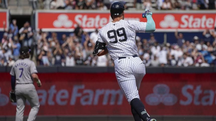 Aaron Judge conectó un jonrón de dos carreras en la primera entrada para convertirse en el quinto jugador con tres temporadas de 50 cuadrangulares y volvió a batear de largometraje en la séptima en la paliza de los Yankees de Nueva York por 10-3 sobre los Rockies de Colorado el domingo.