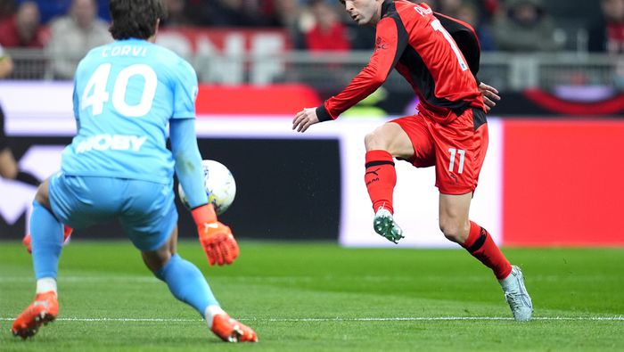 La segunda mitad mantuvo la misma tónica: posesión rossonera y resistencia visitante. Rabiot probó desde fuera del área, y la ocasión más clara llegó al 64’, cuando Leão estrelló una volea en el poste interno, dejando heladas las gradas. El balón se negó a entrar, como presagio de una noche cuesta arriba para el Milan.