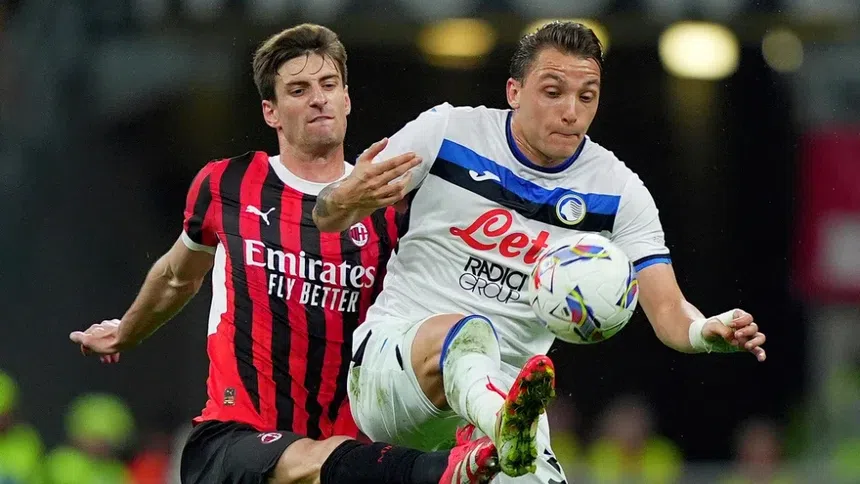 El juego comenzó con intensidad con ida y vuelta por ambos bandos. Los dirigidos por Gian Piero Gasperini amenazaban con jugadas colectivas, mientras que Milan apostaba por la velocidad de Rafael Leão. La primera jugada clara fue para la visita al minuto 25, cuando Mateo Retegui sacó un remate que pasó muy cerca del arco defendido por Mike Maignan.