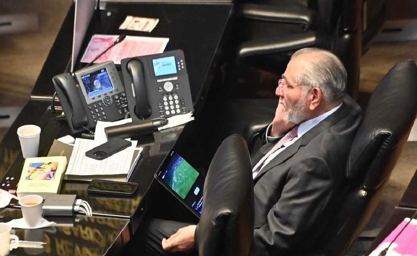 Adán Augusto López es captado viendo la Champions League en plena sesión del Senado