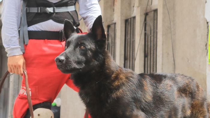 Ahí, sus habilidades fueron fundamentales para localizar a una persona con vida entre los escombros, demostrando la importancia del trabajo de los binomios caninos en este tipo de tragedias.