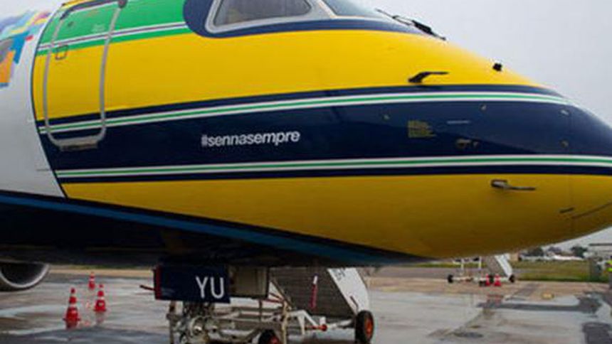 Dos días antes de cumplirse el vigésimo aniversario de la muerte de uno de los principales ídolos deportivos de Brasil, la compañía presentó en Porto Alegre el avión, en cuya parte frontal tiene estampado el casco que le identificó con los colores amarillo, verde y azul.