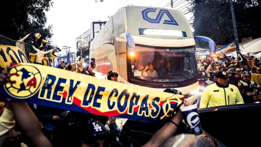 Cientos de aficionados del América se congregaron a las afueras del Estadio Azteca para hacer el tradicional pasillo de bienvenida a su equipo.