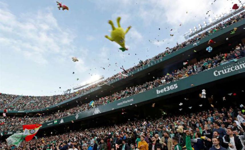 Afición del Betis hizo una lluvia de peluches en el descaso del juego vs Atlético