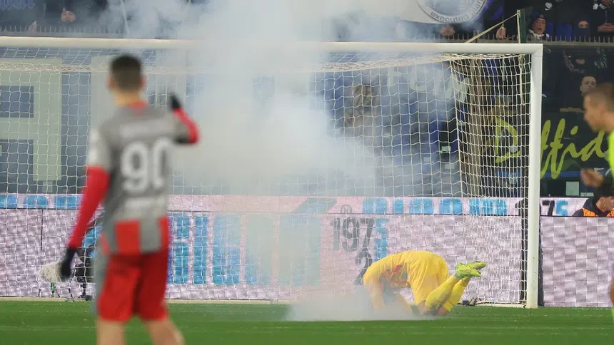Apenas en los primeros tres minutos del segundo tiempo, la repentina acción interrumpió el partido. El petardo cayó cerca de la posición de Audero, por lo que el árbitro tuvo que suspender el encuentro y las asistencias médicas entraron al campo; además de una rápida intervención de los futbolistas.