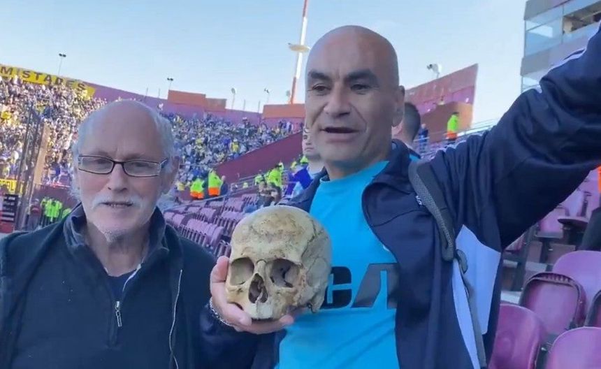 La pasión del futbol no tiene límites. En la Final de la Copa Sudamericana entre Racing Club y Cruzeiro, un aficionado lo vivió de una manera particular, pues llevo el cráneo de su abuelo al estadio.