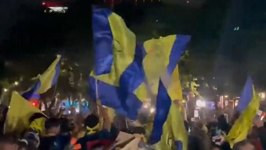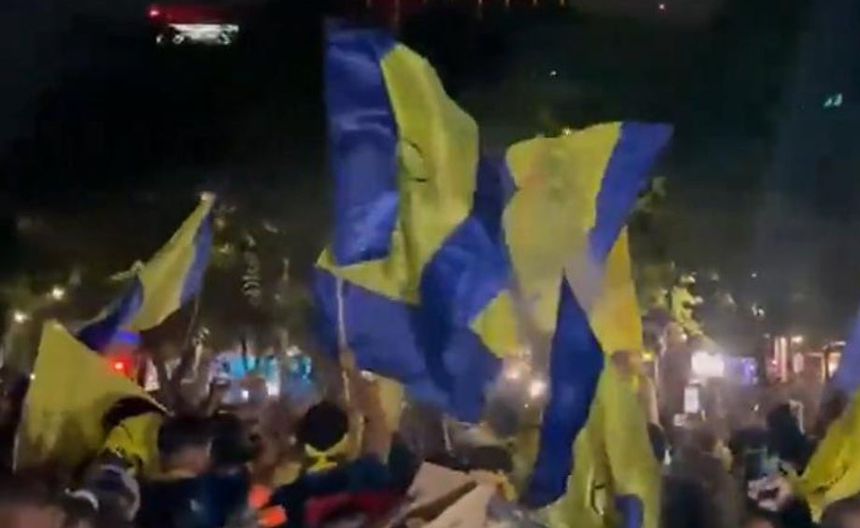 La celebración estuvo marcada por cánticos, porras, banderas, camisetas, bufandas y espuma en aerosol, creando un vibrante ambiente de euforia entre los seguidores de las Águilas.