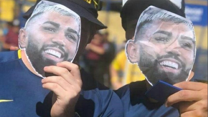 Aficionados de Boca Juniros con caretas de Gabriel Barbosa | TWITTER @DiarioOle