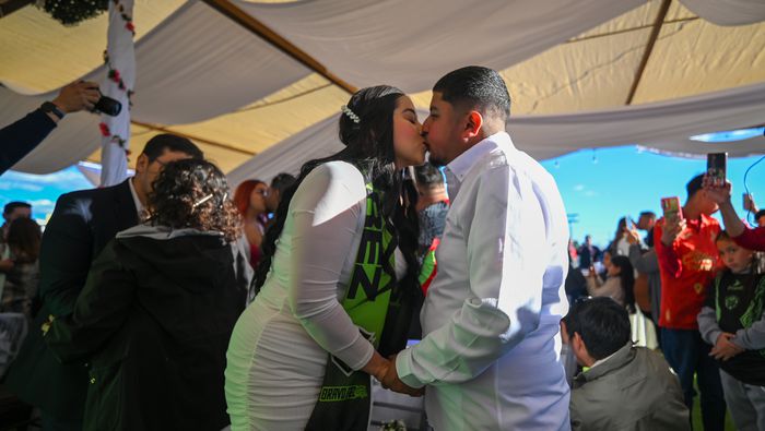 Aficionados de Bravos aprovechan San Valentín y realizan boda colectiva en el Estadio Olímpico