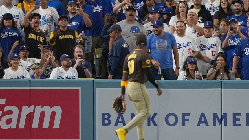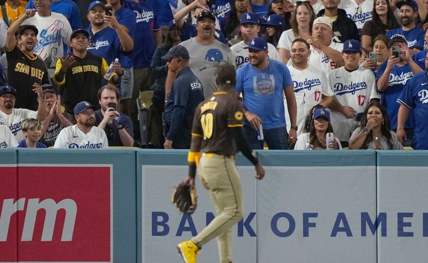 Aficionados de Dodgers arrojan objetos a jardinero de Padres durante Juegos 2 de la SDLN