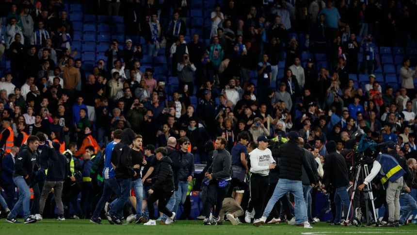 La afición del Espanyol ingresa al campo de juego tras el partido | AP