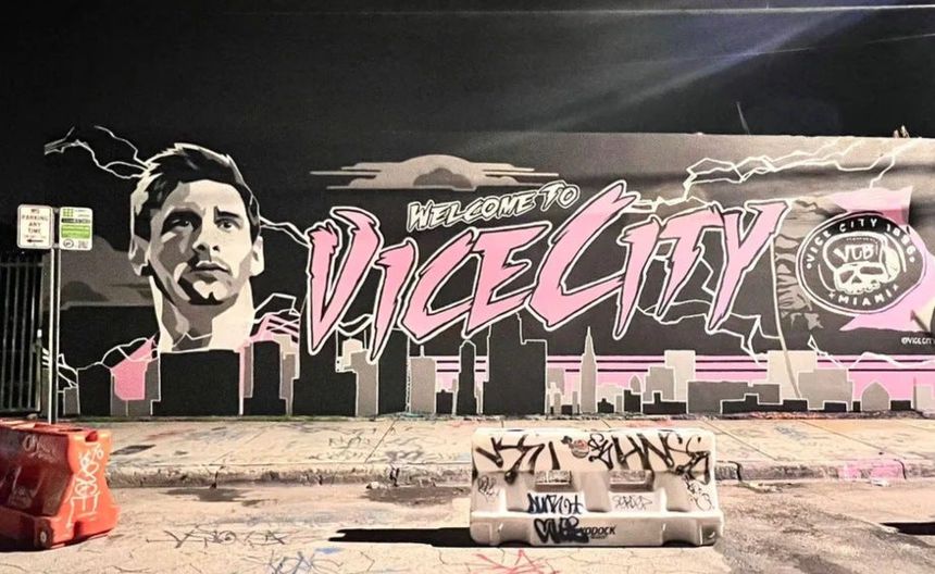 En las redes sociales comenzó a circular un video donde se puede ver una imagen de la cara de Lionel Messi junto a la frase "Welcome to Vice City", pero lo que destacó fue hay manchas de pintura morada en el escudo del equipo de la MLS.