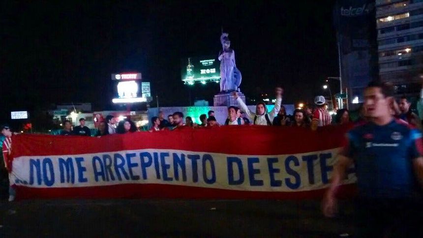 Los fanáticos del Rebaño que no pudieron seguir al equipo en León se reunieron en el monumento de Guadalajara para observar el encuentro y al término comenzar el festejo por el primer campeonato del club en nueve años.