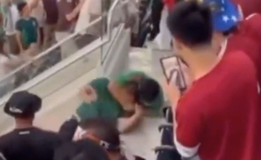 En un episodio que dejó perplejos a los presentes, dos fanáticos mexicanos comenzaron una acalorada discusión en las escaleras del estadio. Lo que empezó como un intercambio verbal rápidamente escaló a un combate físico, recordando escenas de lucha libre y artes marciales mixtas.