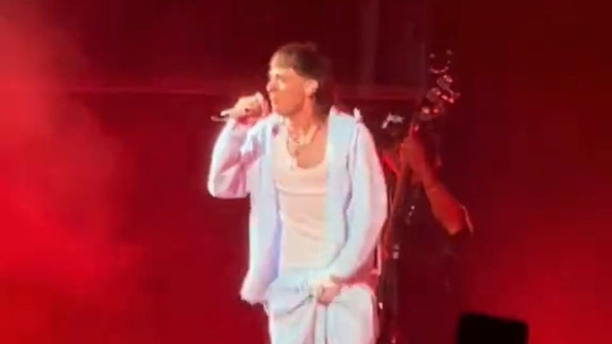 ¡Ah caray! Se le caen los pantalones a Peso Pluma en pleno concierto en Argentina