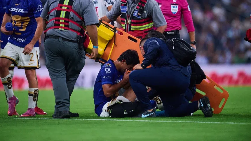 Apenas rebasando la primera media hora de partido, Macías se tiró en el terreno de juego incluso mientras Pumas llevaba a cabo una jugada de peligro a favor, por lo que el juego tuvo que detenerse. Aunque en el futbolista mexicano no se veía un rostro de preocupación, el cuerpo médico tuvo que ingresar para posteriormente llevarlo fuera del campo con camilla, lo que representa una situación aún más complicada.