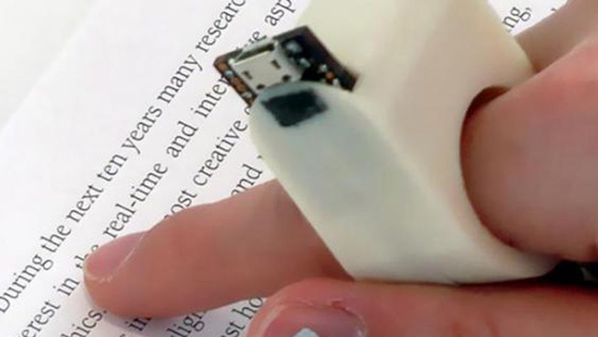El FingerReader es una especie de anillo equipado con una cámara, bocina, giroscopio y acelerómetro, que permiten leer en tiempo real el texto que el usuario señala con el dedo a través de un software de reconocimiento de caracteres de código abierto, por lo que el dispositivo detecta el renglón que el usuario señala y 'lee' el texto.