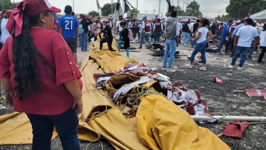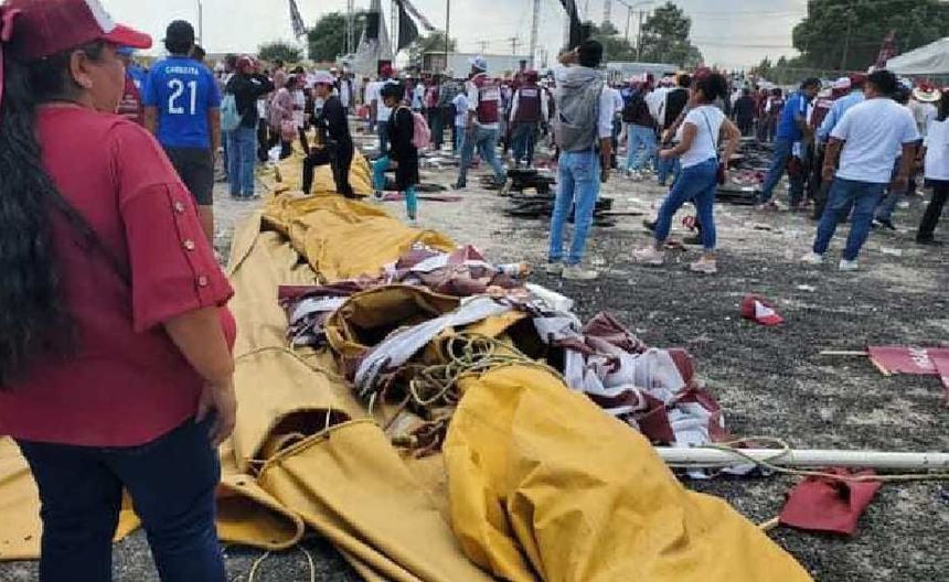 Aire derrumba lona en mitin de Morena en Edomex, dejando varias personas lesionadas