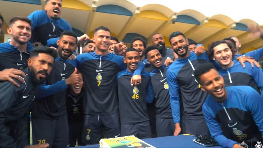 Cómo ha sido costumbre prácticamente más últimas dos décadas, Cristiano Ronaldo se encontraba entrenando y preparándose para su siguiente partido, pero todos sus compañeros del Al-Nasr se dieron el tiempo de parar unos minutos para que festejarán y se tomarán una foto junto a su pastel, que por cierto, estaba él impreso en el mismo.