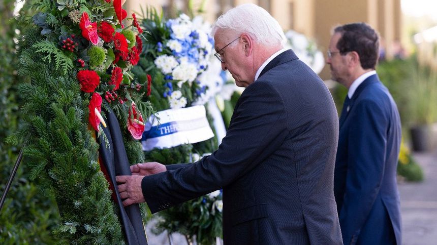 El presidente alemán Frank-Walter Steinmeier y el presidente de Israel Isaac Herzog depositaron ofrendas florales en el lugar.