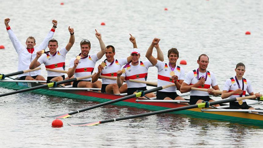 Alemania arrebató el Oro olímpico de la justa que se celebra en Londres al equipo británico tras ganar la prueba reina del remo, ocho con timonel varonil, mientras que los locales tuvieron que conformarse con el bronce.