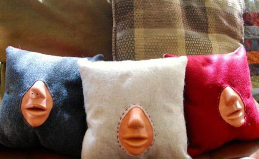 En Florida, la diseñadora Emily King presenta su 'Make-Out Practice Pillow', una almohada para practicar y perfeccionar la técnica para besar, así como para aquellos que nunca han besado.