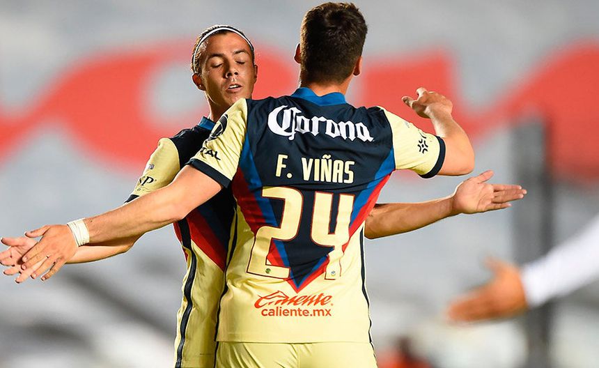 Viñas y Córdova se abrazan tras un gol del América | MEXSPORT