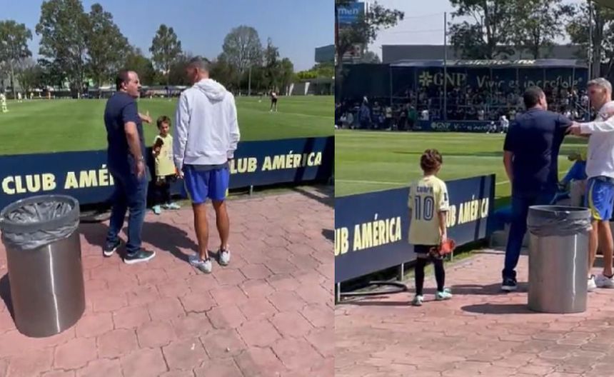 En el video también se logra apreciar que Cuauhtémoc recrimina algo a su hijo, que porta la playera del América y guantes de portero, lo que generó una cara de tristeza de su pequeño.