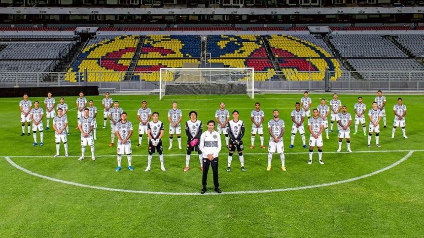 El Club América presentó su fotografía oficial del Guardianes 2021 la cual se tomó sobre el césped del Estadio Azteca y con el escudo del equipo de fondo.