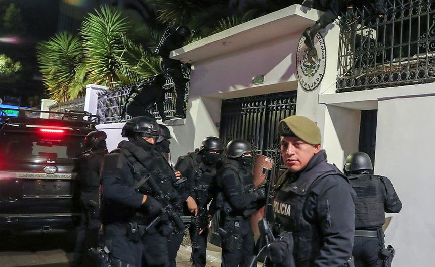 Testigos afirman que la policía ecuatoriana escaló las paredes y vallas de la embajada, en una acción que fue descrita por Roberto Canseco, jefe de la Cancillería y Asuntos Políticos de la Embajada, como una agresión directa al personal diplomático y una "barbarie" inaceptable.