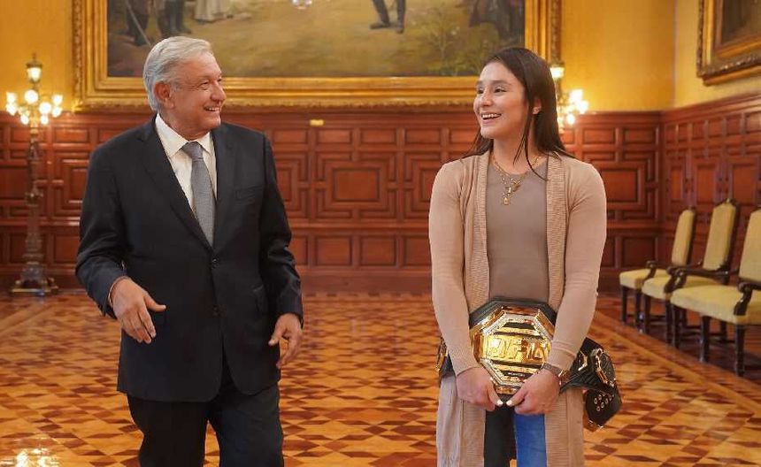 Alexa Grasso es la primera mexicana campeona de UFC, ante este logró, la peleadora fue invitada al Palacio Nacional por el presidente de México, Andrés Manuel López Obrador.