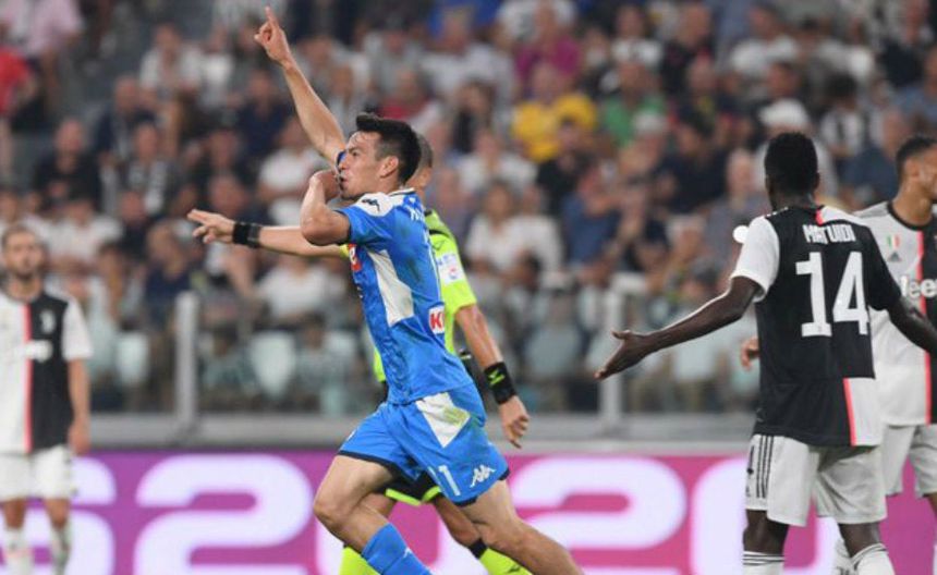 Chucky Lozano festeja un gol con el Napoli | TWITTER @HIRVINGLOZANO70