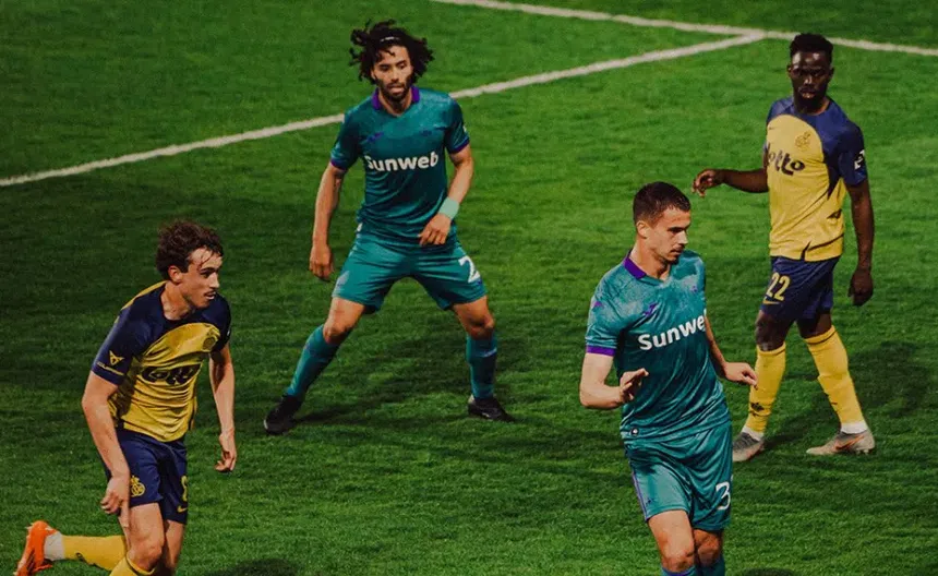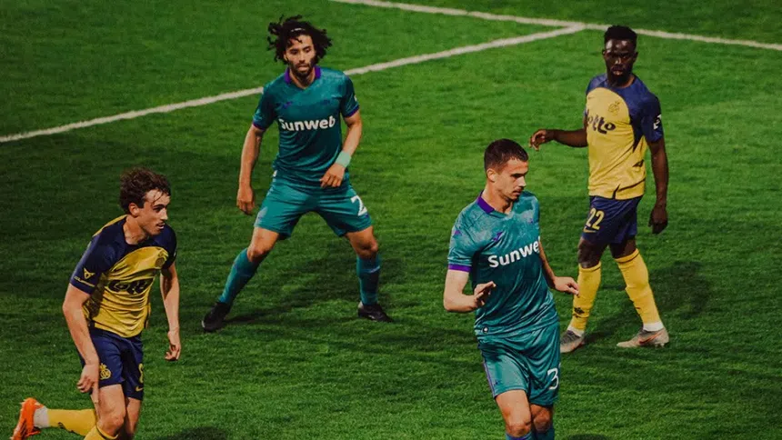 Ya en el partido, ninguno de los dos equipos tenía un dominio durante el primer tiempo. Sin embargo, justo antes del descanso, el equipo local tomó ventaja. Al 45’, tras un pase raso desde la banda derecha, Promise David recibió al borde del área chica rival y luego de su recepción dirigida, remató de forma cruzada para poner el 1-0 en la pizarra a favor del Union Saint-Gilloise.