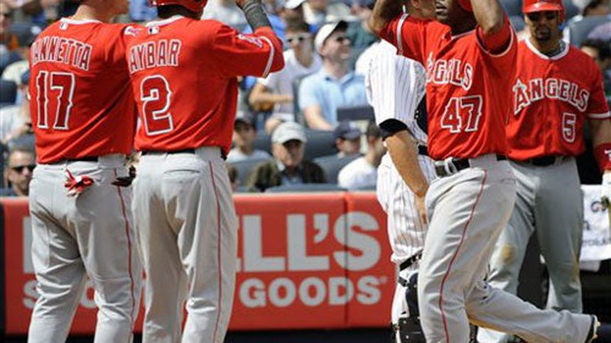 Howie Kendrick, Chris Iannetta y Vernon Wells batearon cuadrangulares para ayudar a los Angelinos a cortar una cadena de tres derrotas seguidas y parar en cuatro la racha ganadora de los Yanquis.