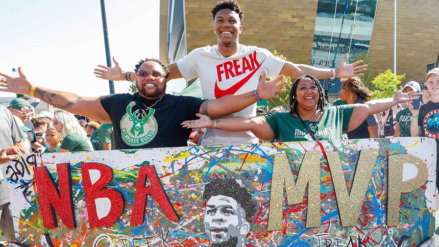"Después de este día, no me llamen MVP hasta que lo gane el año que viene", expresó el jugador de los Milwaukee Bucks ante la multitud que lo acompañaba.