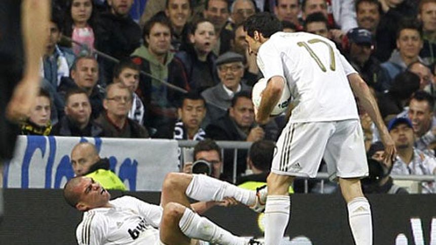 En una acción del Real Madrid-Valencia, cuando el encuentro se encendía en la continua búsqueda del gol de los jugadores de José Mourinho, Pepe recibió una entrada del argentino Pablo Piatti. Cuando se quejaba en el suelo, Arbeloa quiso levantarle con rapidez y recibió una patada de su compañero en la rodilla, que pensó que era el rival.