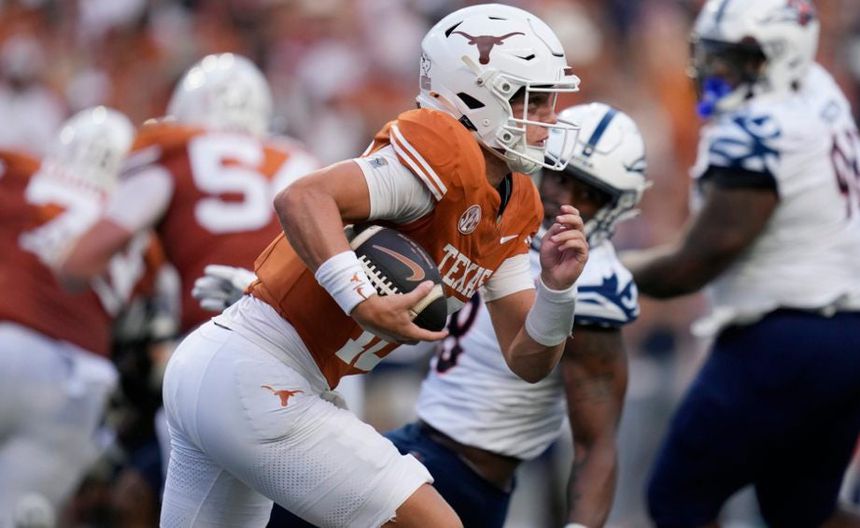 Además, el quarterback de Texas hizo un lanzamiento de 19 yardas a DeAndre Moore. Un pase de 19 yardas de distancia que lo hizo apenas en su primera jugada del encuentro.