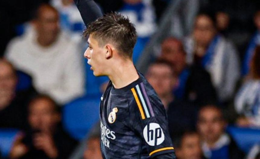 Dentro de las pocas emociones que ofreció el juego en la primera parte, Arda concluyó un relampagueante ataque madridista: Aurélien Tchouaméni abrió hacia la banda derecha, Dani Carvajal tocó de primera intención al borde del área y Güler empalmó para cruzar a Álex Remiro al minuto 29.