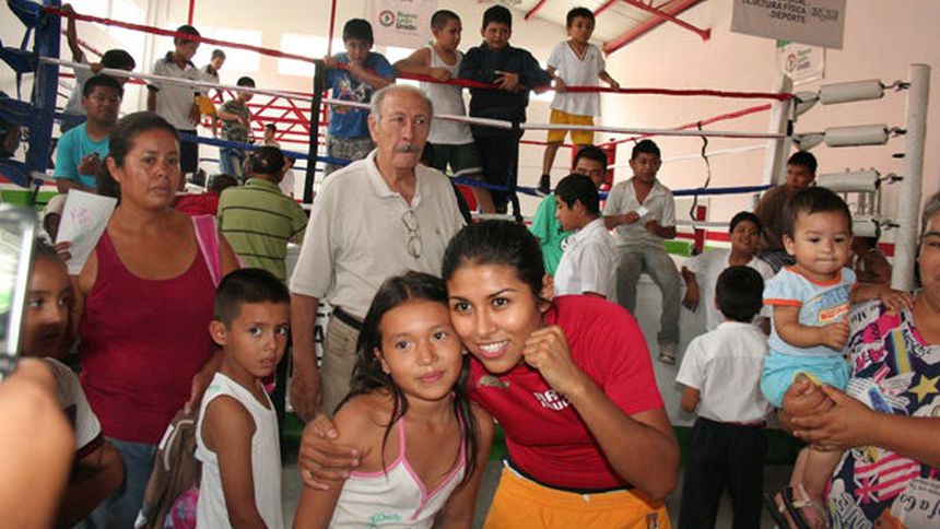 A dos días de la pelea para retener su título de peso Mosca, la regia Arely Muciño se dio un tiempo para convivir con algunos jóvenes que viven en zonas conflictivas de la Ciudad.