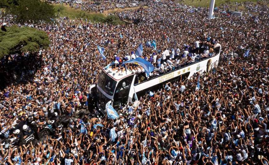 Sin embargo, esto ya no va a suceder, después de que una enorme aglomeración de aficionados presentes durante los festejos por el título mundial conseguido en Qatar provocara que el camión ya no pudiera avanzar.