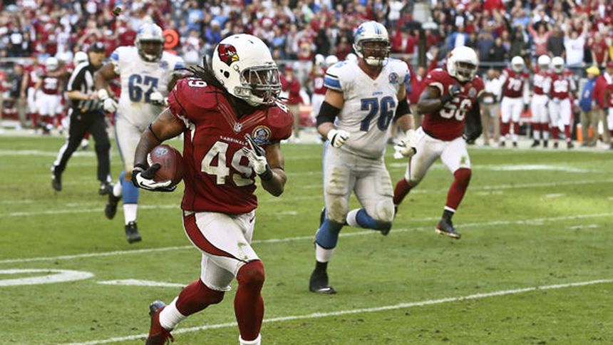 Greg Toler regresó una intercepción 102 yardas para touchdown en el cuarto período, y selló el domingo una victoria de Arizona 38-10 sobre los Leones de Detroit (4-10).