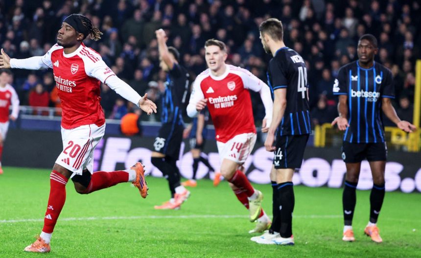 Arsenal golea de visita al Brugge y se afianza como líder de la Champions League