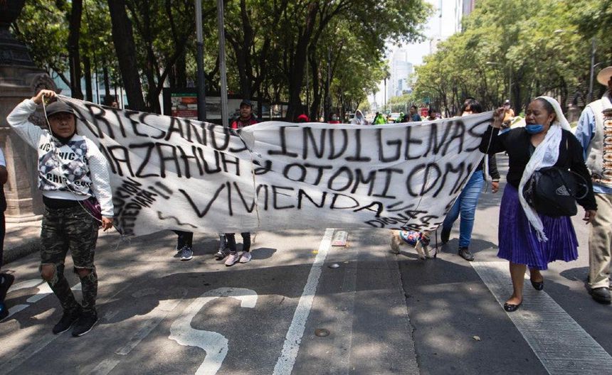 Artesanos mazahuas se manisfestaron sobre Paseo Reforma para exigir apoyo durante la pandemia de coronavirus.