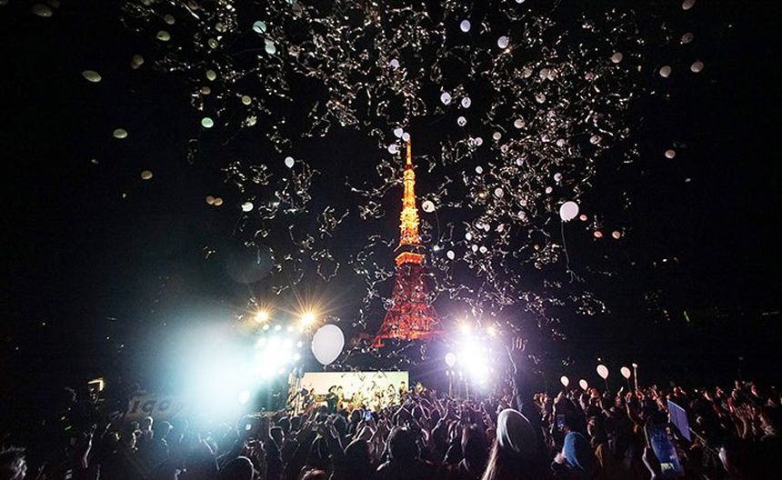 En la capital de Japón, soltaron globos al cielo frente a la iluminada Torre de Tokio, con motivo de los festejos del cambio de año.