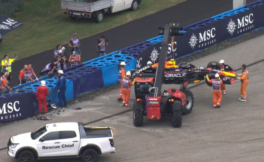 Comenzaban a caer algunas gotas de lluvia cuando el piloto de Red Bull, en el afán de mejorar su tiempo, "pisó" un secto mojado de la pista en el Hungaroring y no pudo mantener el control del auto. Con ello suma dos fines de semana al hilo con accidente en la Q1, tras lo que le pasó en Silverstone.