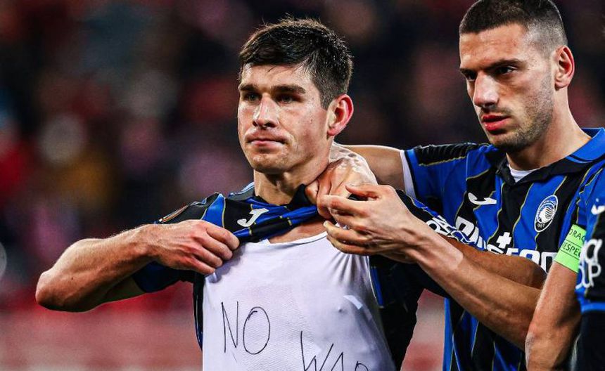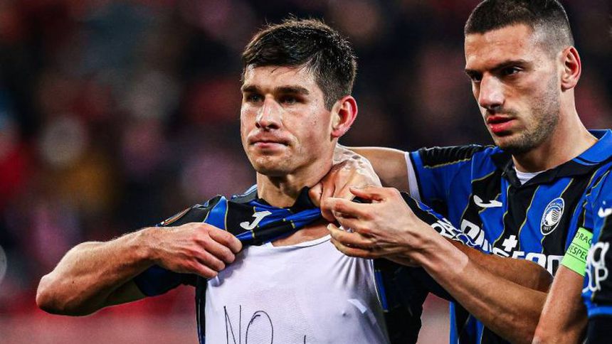 "No a la guerra en Ucrania", mostró en escrito contenido debajo de su camiseta del Atalanta, posterior a conseguir su segunda anotación frente al equipo griego.