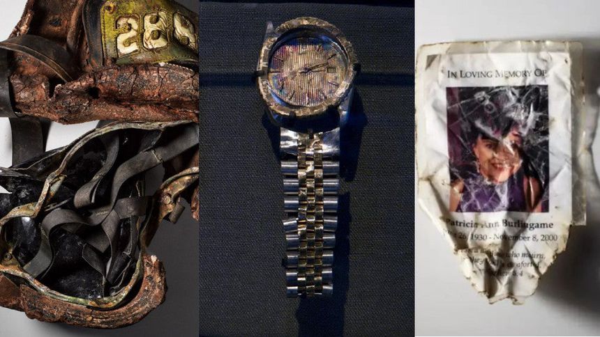 En el Museo del 11-S se puede apreciar desde un anillo de diamantes hasta la tapa de un recipiente de comida. Sin dejar de lado los utensilios de los bomberos hasta objetos personales como una credencial o unos lentes.
