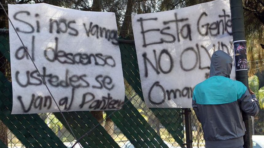 El viernes pasado, justo a la hora que se hacía la presentación de Omar Bravo en la sala de prensa del Atlas, en las afueras del club dos aficionados colocaban pancartas en contra del mochiteco y de la directiva, en las que sobresalían las frases de "Si nos vamos al descenso ustedes se van al panteón" y "Esta gente no olvida Omar Bravo", además de fotos con la imagen del delantero defendiendo los colores rojiblancos.